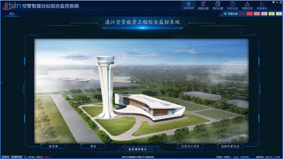 計通智能為高坳嶺雷達(dá)站、空管工作區(qū)VHF臺分別建設(shè)一套智能化綜合監(jiān)控系統(tǒng),通過建設(shè)統(tǒng)一的監(jiān)控和管理平臺,通過數(shù)據(jù)采集和網(wǎng)絡(luò)傳輸?shù)姆绞?,將各雷達(dá)站內(nèi)各自獨立的動力環(huán)境設(shè)備、防雷設(shè)施的運行指標(biāo)、狀態(tài)、參數(shù)等數(shù)據(jù)集中存儲、查詢和監(jiān)控,對于異常數(shù)據(jù)進(jìn)行多種方式報警,同時結(jié)合先進(jìn)的視頻監(jiān)控技術(shù)對雷達(dá)站進(jìn)行可視化監(jiān)控,實現(xiàn)數(shù)據(jù)圖形一體化監(jiān)控,從而縮短判斷故障的時限,提高解決故障的能力。